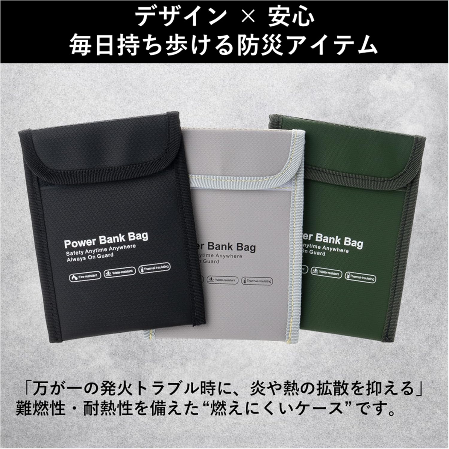 難燃性・耐熱性を備えた モバイルバッテリー用“燃えにくいケース” です。