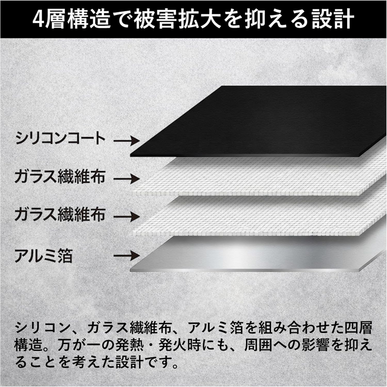 万が一の発火トラブル時に、炎や熱の拡散を抑える」