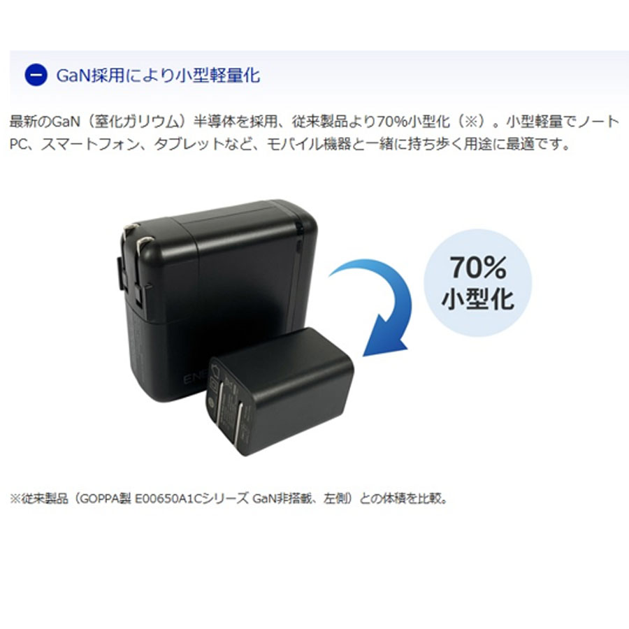 GaN(窒化ガリウム)を採用、小型軽量でノートPC、スマートフォン、