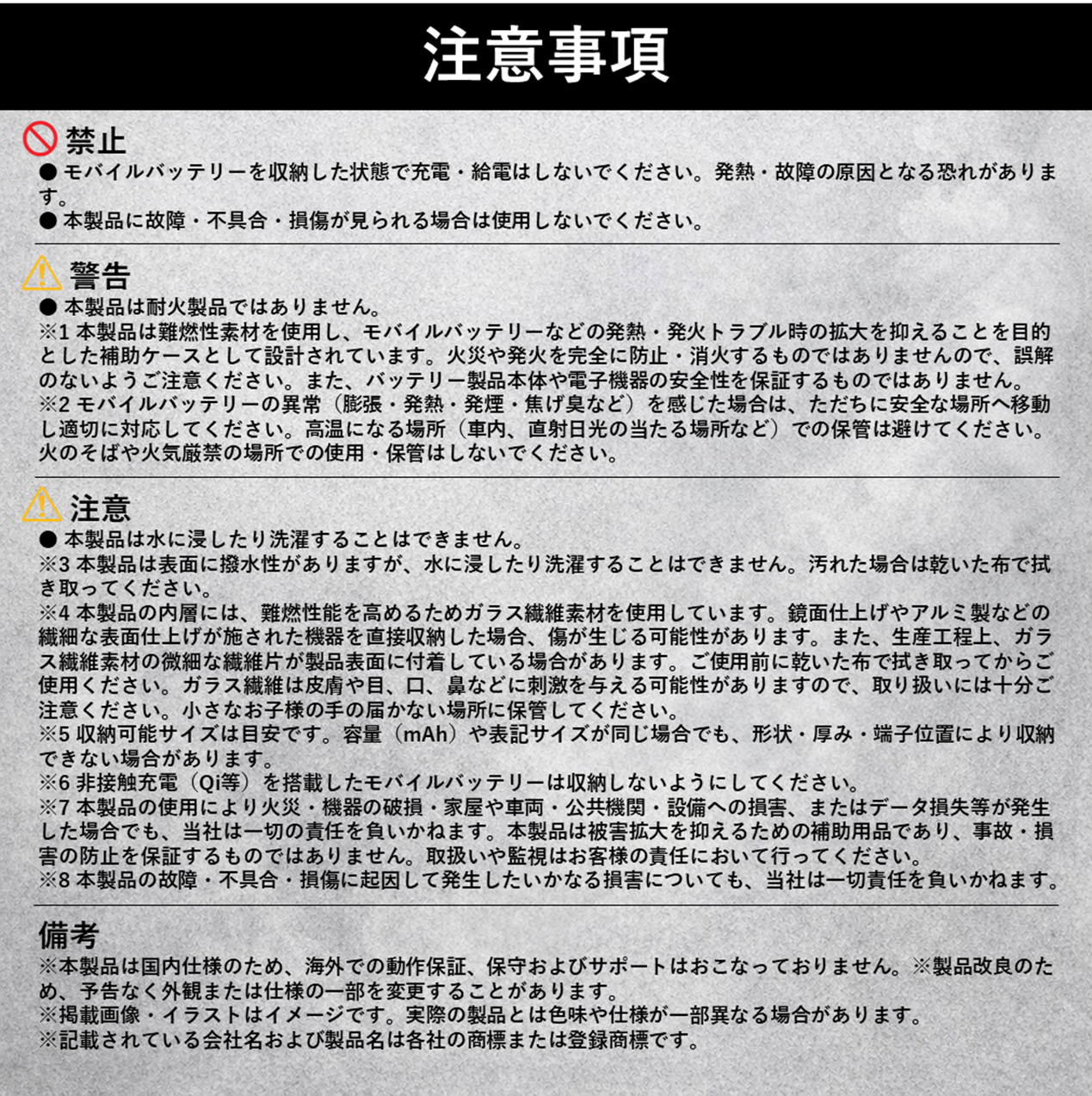 難燃性・耐熱性を備えた モバイルバッテリー用“燃えにくいケース” です。
