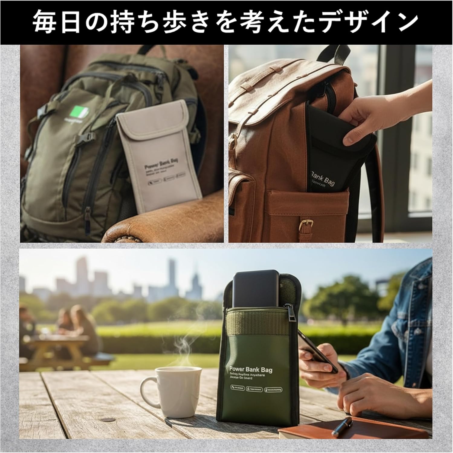 難燃性・耐熱性を備えた モバイルバッテリー用“燃えにくいケース” です。