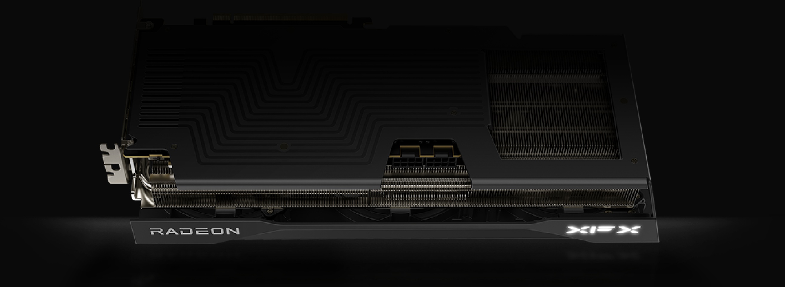 XFX Swiftクラスの各イテレーションでは、設計の簡素化と熱性能の向上に努めてきました。ニッケルメッキ銅製コールドプレート、ダブルボールベアリングファン、そして6mmヒートパイプを組み合わせることで、優れた冷却性能と放熱性を実現しています。